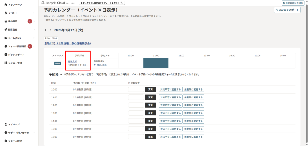 - イベント開催日の予約をCSVでダウンロードする場合は、こちらをご覧ください。