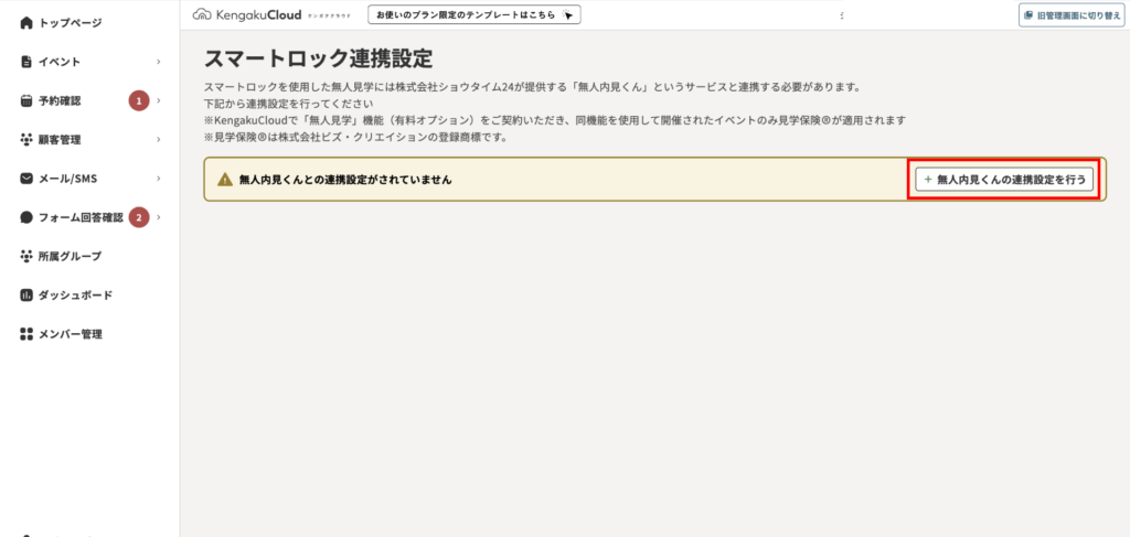 2. [無人内見くんの連携設定を行う]をクリックします。