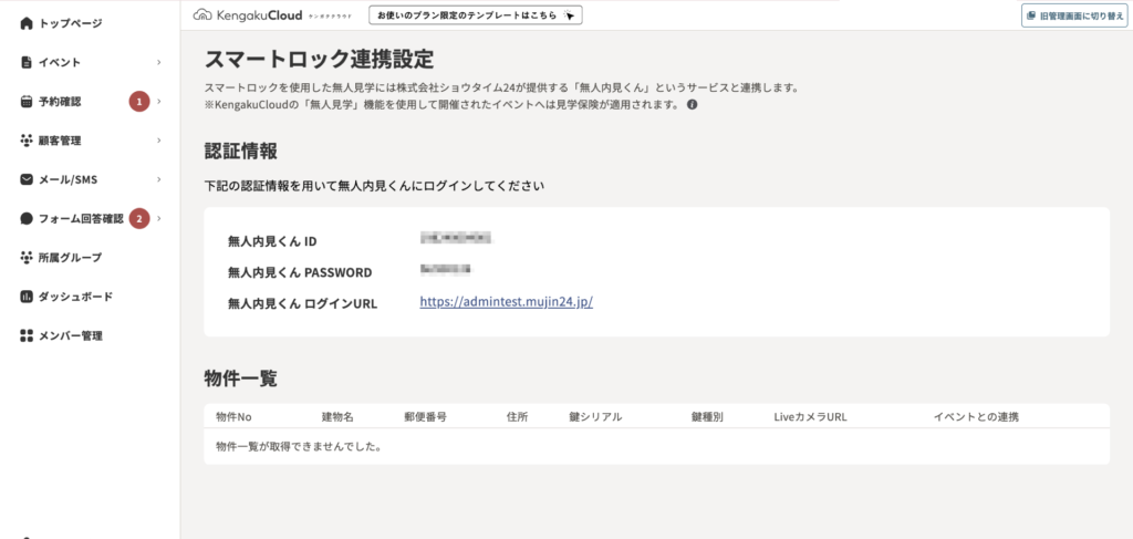 無人内見くんの物件NoをKengaku Cloudに紐づけます。